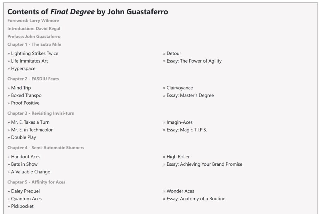 Final Degree isn’t just a book of John’s best pieces of magic. It’s one of the best books we’ve ever published.