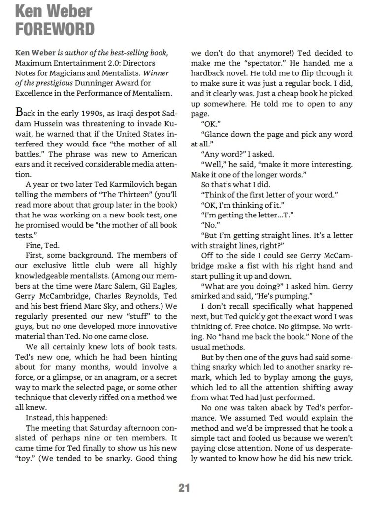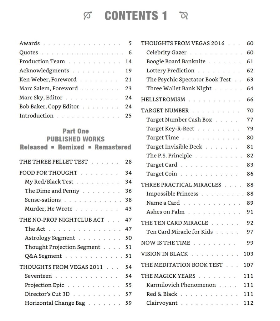 The first part is his complete published works. This comprises 70 complete routines, including his Target series. He also details the step-by-step process leading up to his most significant creation: The Mother Of All Book Tests.